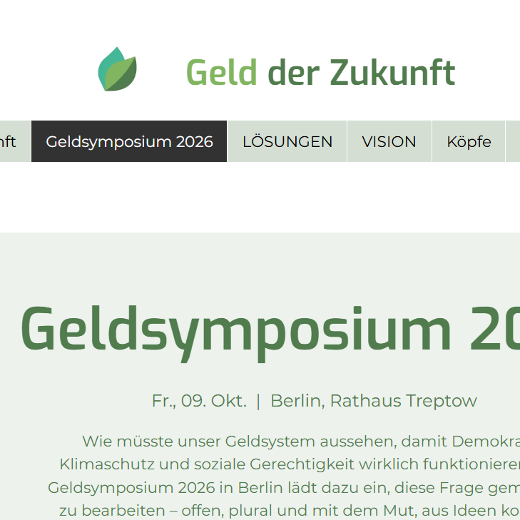 Wie müsste unser Geldsystem aussehen, damit Demokratie, Klimaschutz und soziale Gerechtigkeit wirklich funktionieren? Das Geldsymposium vom 09. bis 10. Oktober 2026 in Berlin lädt dazu ein, diese Frage gemeinsam zu bearbeiten – offen, plural und mit dem Mut, aus Ideen konkrete Reformoptionen zu entwickeln.